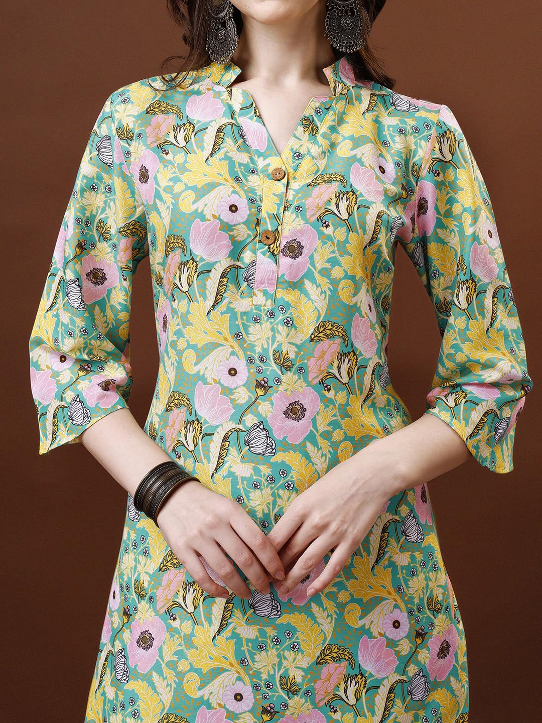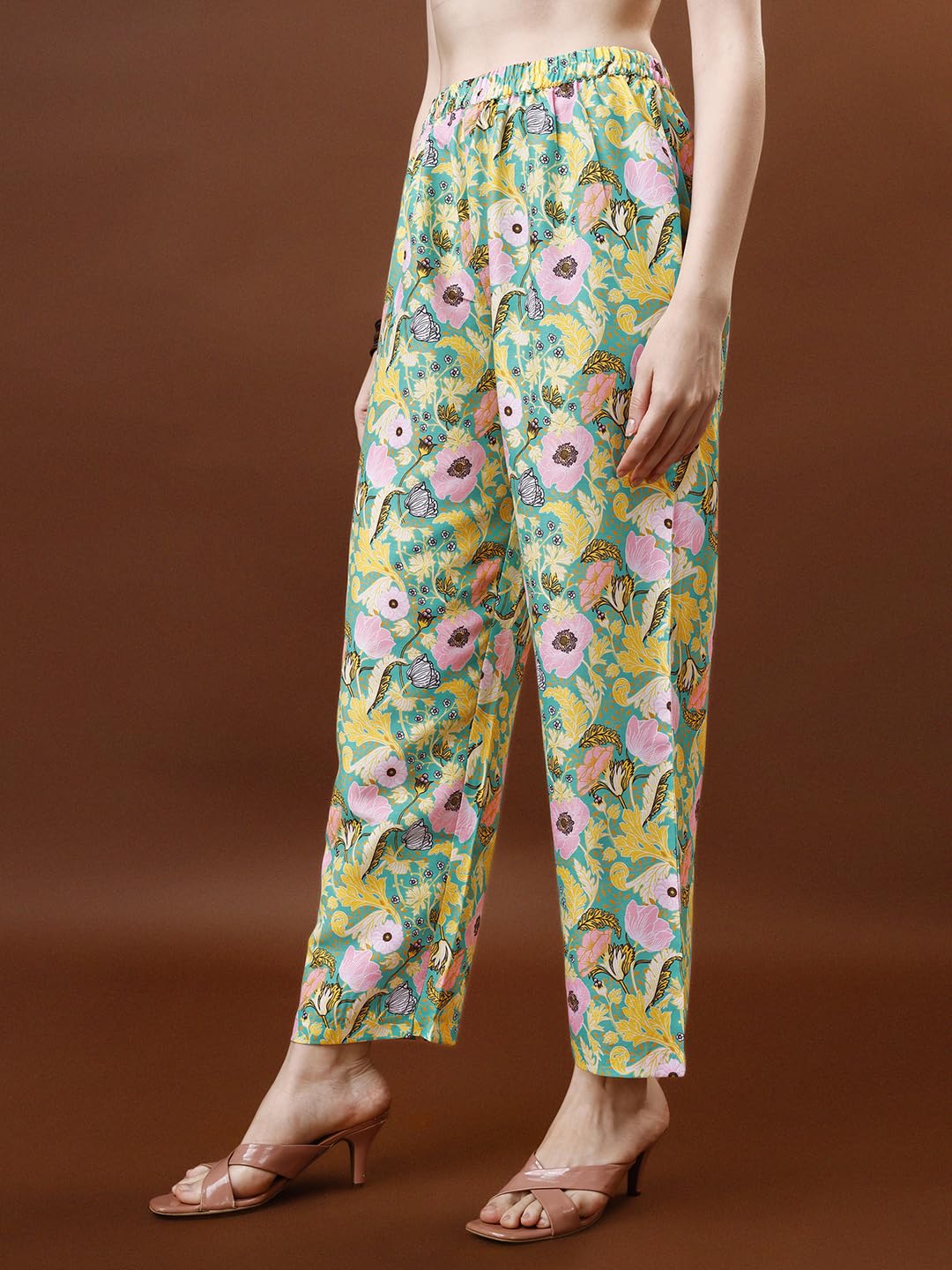 LookMark Women Women's Trendy Printed Cotton Blend Straight Light Green Color Kurta and Palazzo Set (KS2075-XL)