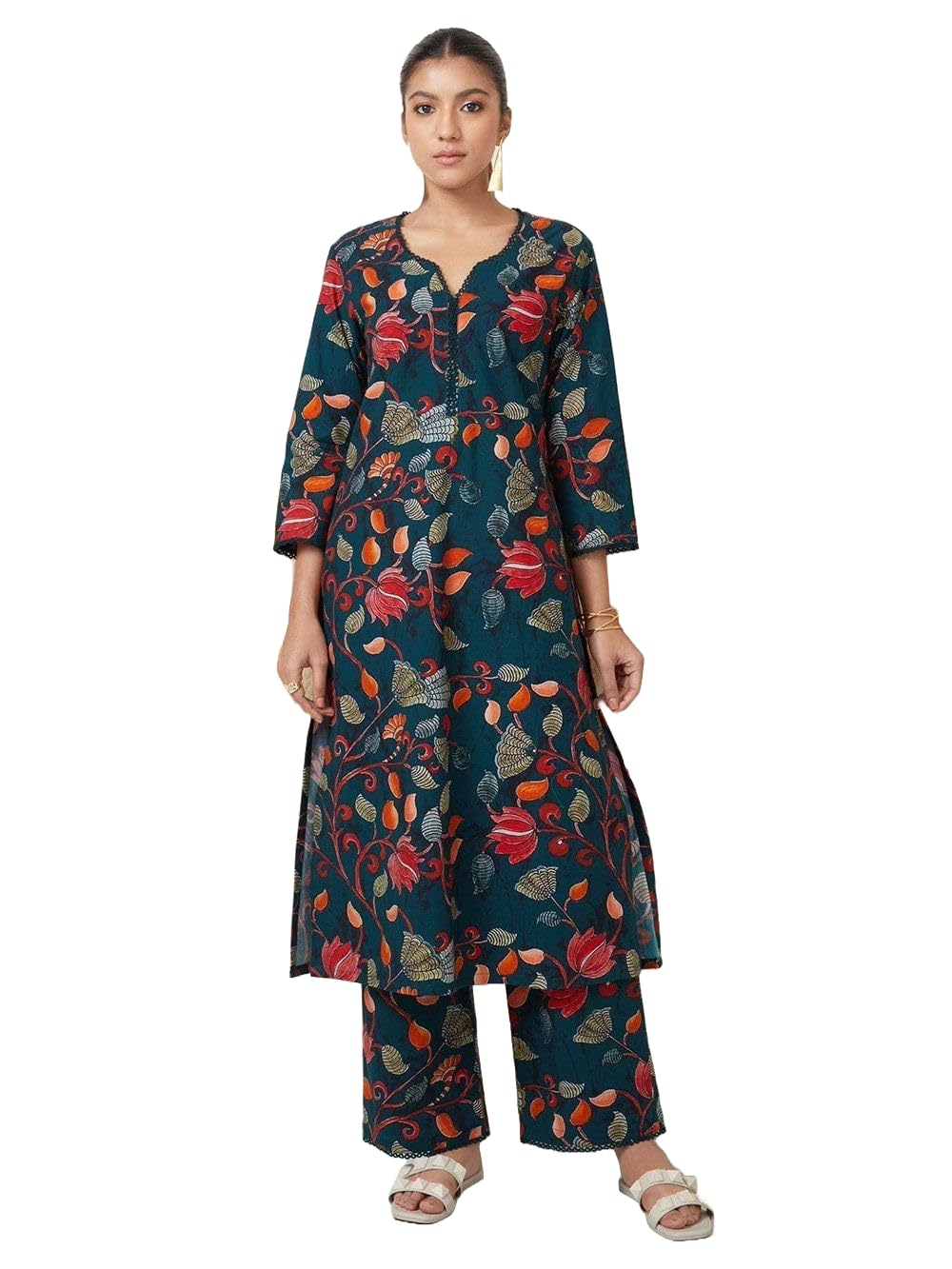 Comfortable Cotton Blend Fabric: Made from a high-quality cotton blend, this kurti pant set offers a soft and breathable fit, ideal for long hours of comfort throughout the day.