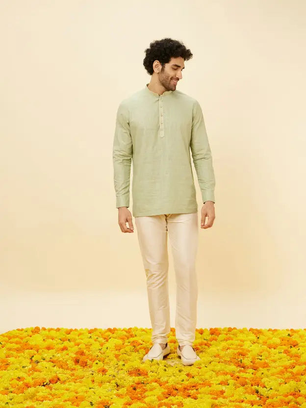 Men Self Design Cotton Blend Straight Kurta