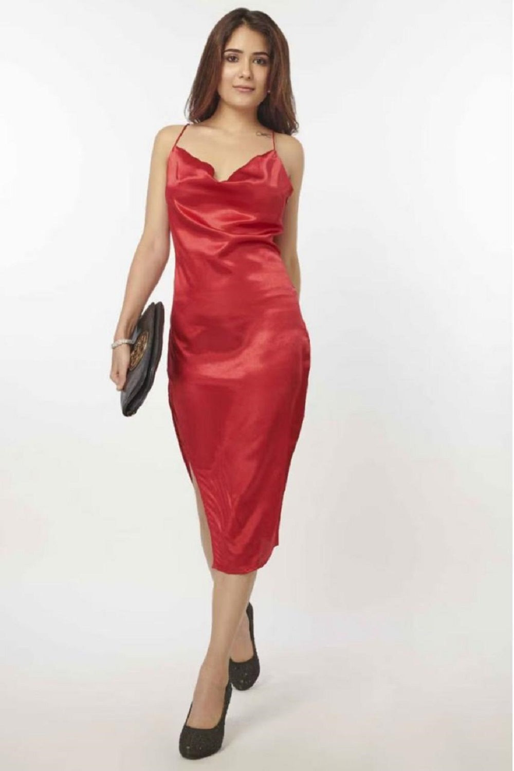 Achieve a timeless and elegant look with our Red Satin Cowl Neck top. Featuring a flattering draped neckline and smooth, luxurious fabric, this top is perfect for any occasion. Dress it up or down, and always look effortlessly stylish.