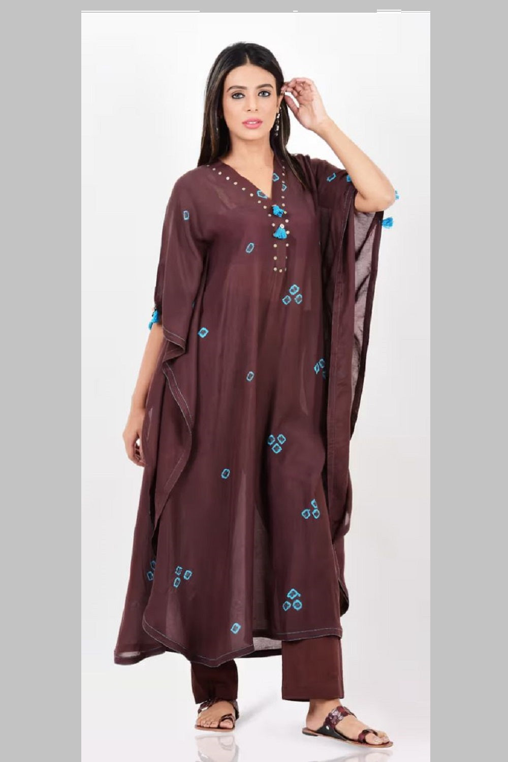 Brown And Turquoise Dual Bandhani Tie Dye Kaftan Kurta