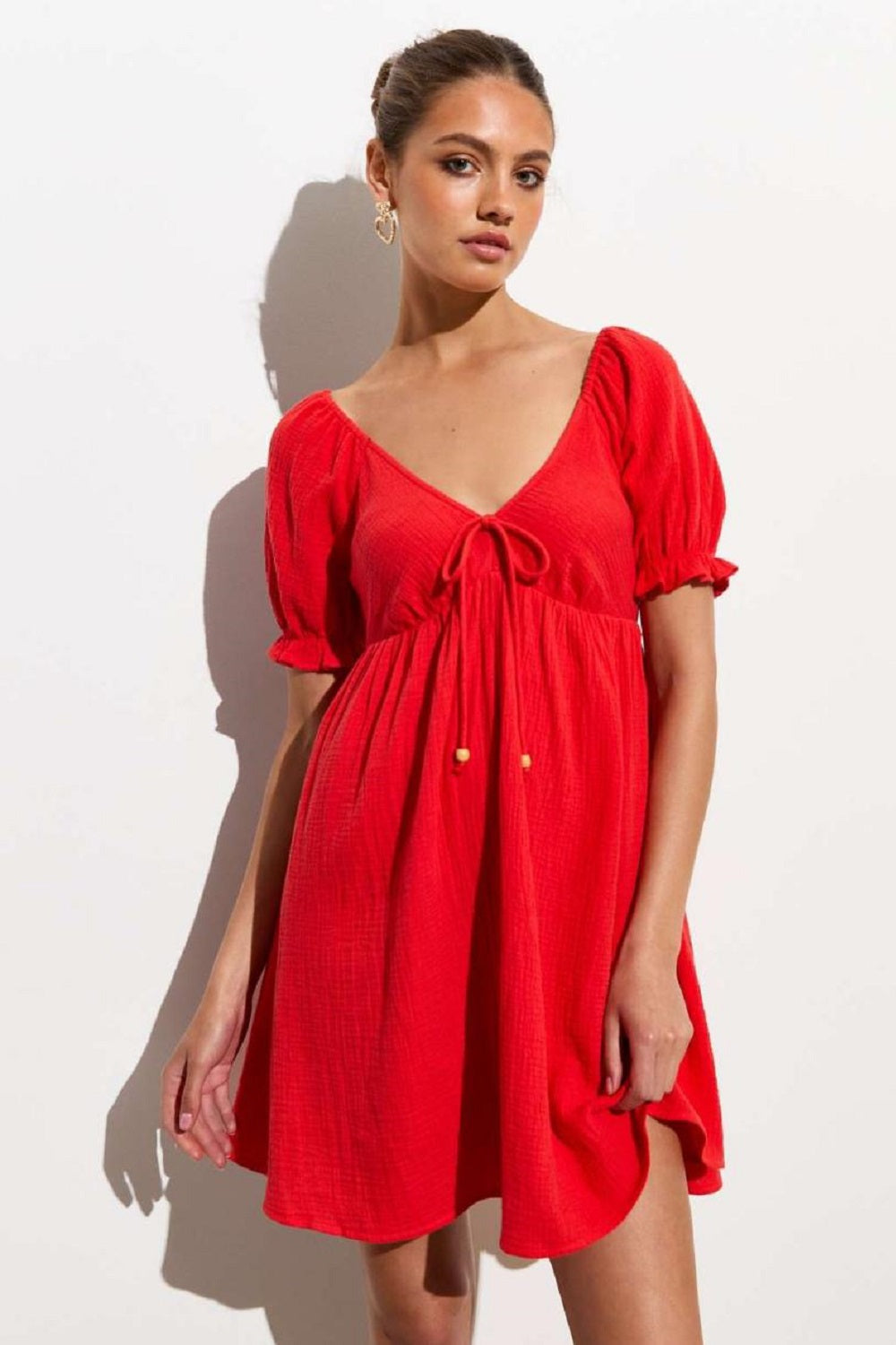As an expert in the fashion industry, I am proud to present our Women's blend cotton red short dress23. Made with high-quality materials, this dress offers timeless style and comfort. With its striking color, it will make a bold statement and enhance your confident appearance. A must-have for any fashionable woman's wardrobe.