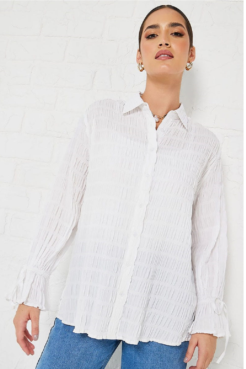 As an expert in the fashion industry, I am proud to present our Women's crepe textured white oversized shirt33. Made with high-quality materials, this dress offers timeless style and comfort. With its striking color, it will make a bold statement and enhance your confident appearance. A must-have for any fashionable woman's wardrobe.